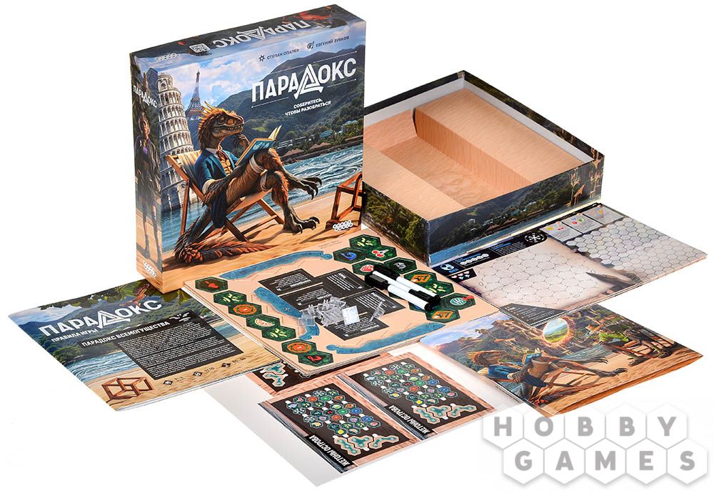В настольной игре "Парадокс" одному из вас предстоит стать тем самым Парадоксом всемогущества, создателем острова, а остальные станут его пленниками. Жертвы парадоксов имеют свои личные цели, которые они должны достигнуть для побега с острова. Но трудность в том, что остров видит только Парадокс всемогущества, и он не собирается никого отпускать... Несчастным пленникам придётся блуждать вслепую, чтобы изучить территорию и воссоздать на своём планшете расположение клеток игрового поля. Лишь тот, кто первым справится со своей миссией, сможет покинуть остров.