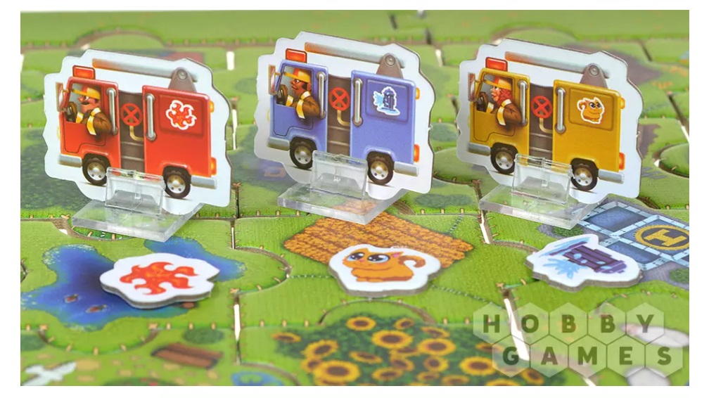 Перед началом игры соедините 4 рамки – это границы игрового поля. Затем выберите любую карту головоломки и выложите стартовый пазл, как на ней указано, чтобы составить текущий план города. У вас останется несколько деталей пазла – с их помощью вы и будете решать задачу. На карте головоломки также указано, где на поле располагаются жетоны происшествий и фишка пожарной машины. Расположите их согласно карте. Теперь вы готовы помогать пожарным!